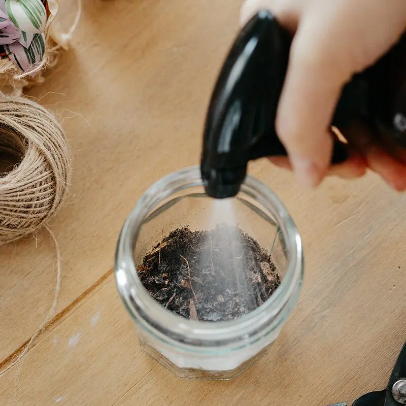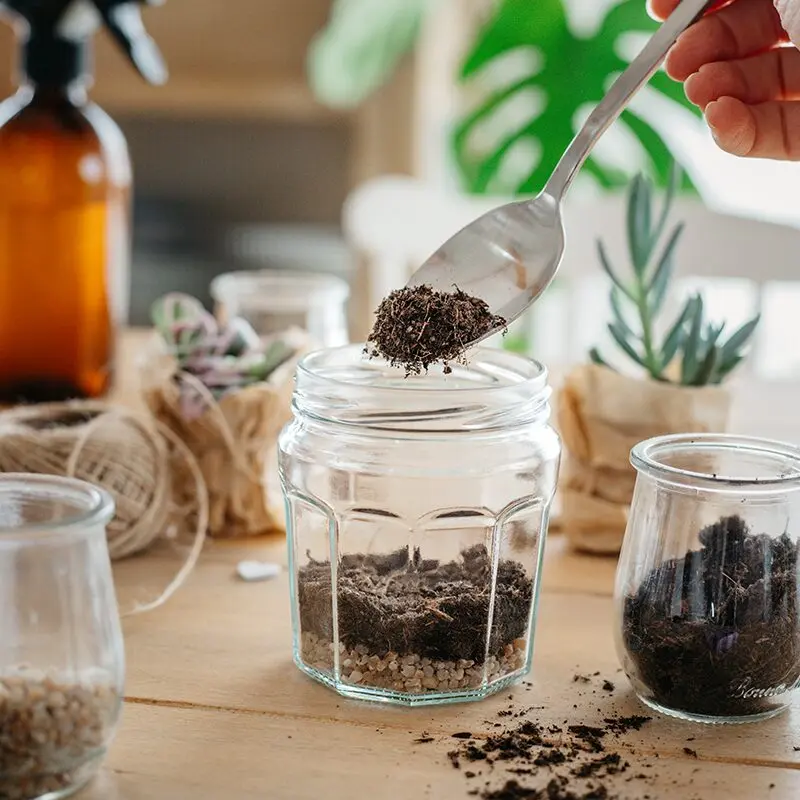 1. ジャム瓶の底に小粒の軽石またはゼオライトを薄く敷きます。