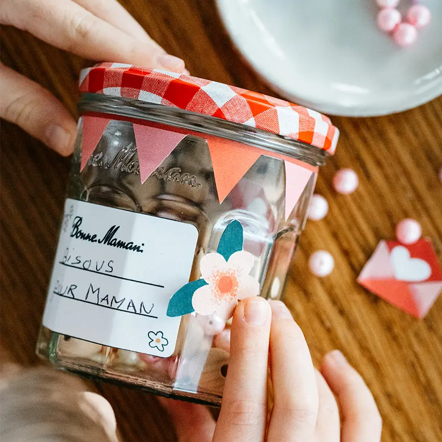 Bonne Maman のシール&ラベルPDFを印刷し、はさみで必要なパーツを切り抜きます。