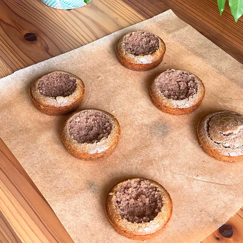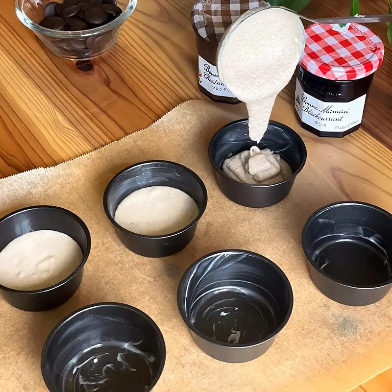 カップケーキ型に流し入れ、12分間焼く。焼き上がったら型から外し、冷ます。