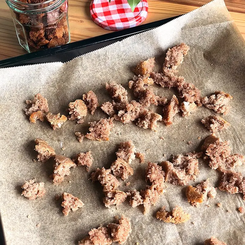 *5.でカットした生地の余りを使ってビスケットシリアルを作れます。