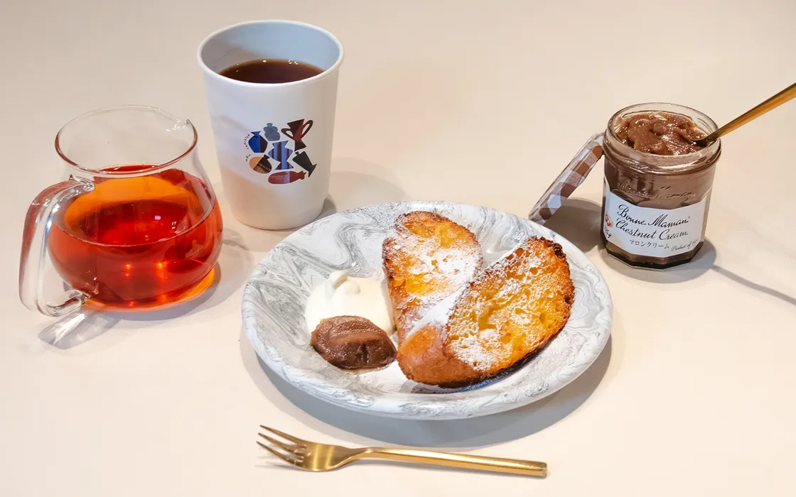 しっとり焼き上げたフレンチトーストに、バニラ香る濃厚なBonne Mamanのマロンクリーム。栗のやさしい甘さとクリーミーな味わいが広がる贅沢な一皿。
