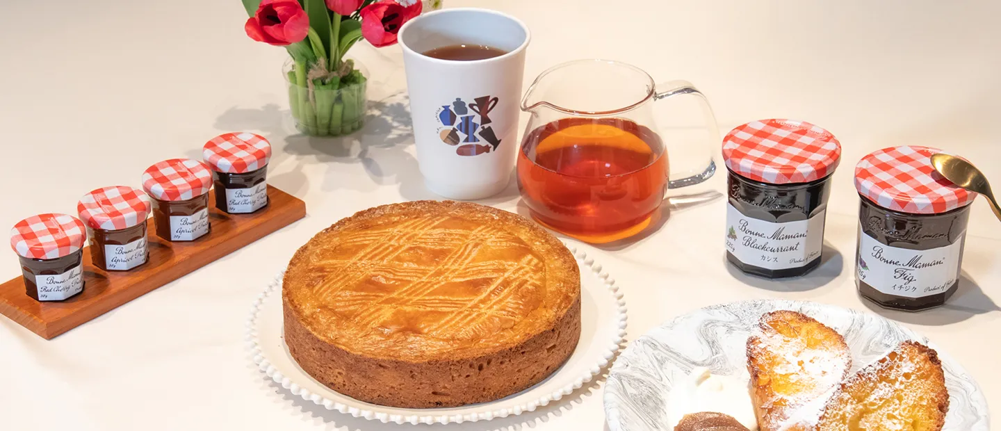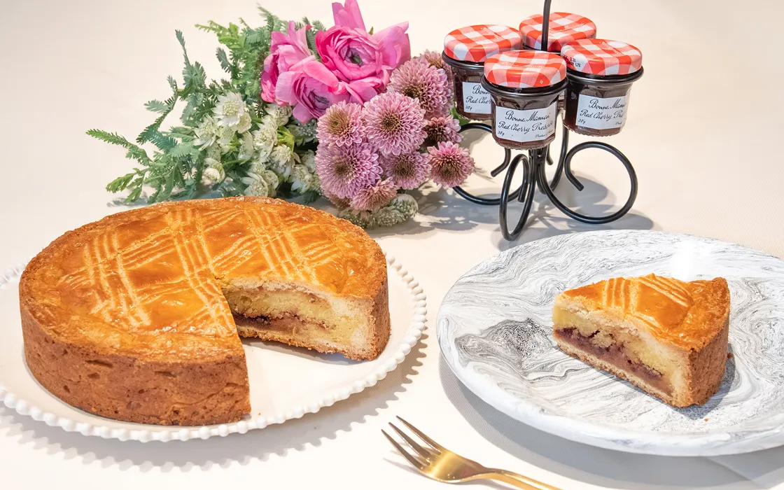 ラム酒をほんのり効かせたガトーバスクに、Bonne Mamanの果肉たっぷりのチェリージャムを加えました。ほのかな酸味で、フレッシュな味わいと華やかな香りが広がる一品。